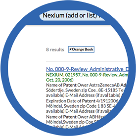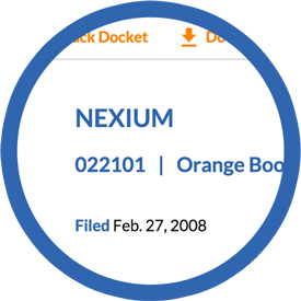 Docket Alarm connects directly to the orange book, providing Hatch-Waxman lawyers and their support team unprecedented visibility into orange book matters at the FDA.